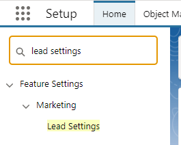 Go to Setup and Search in the Quick Find for "Lead Settings"
